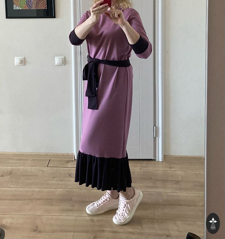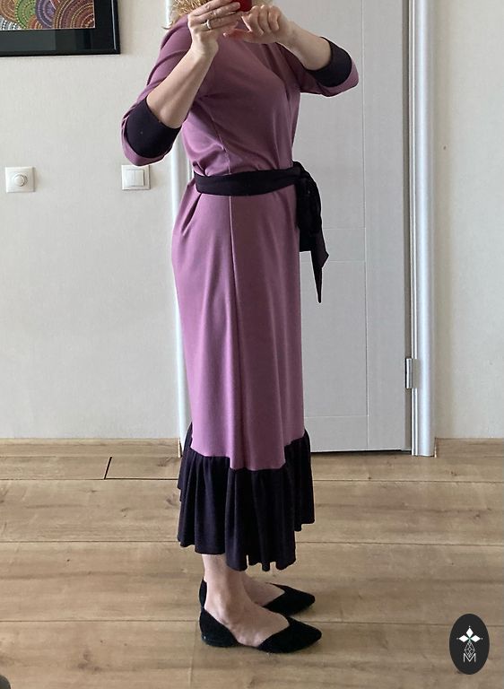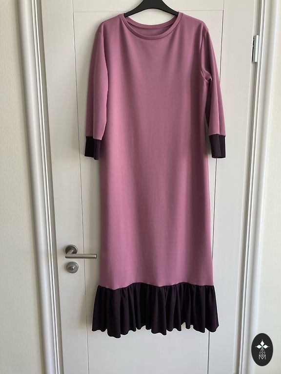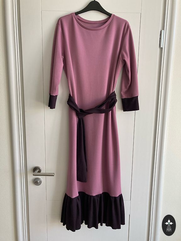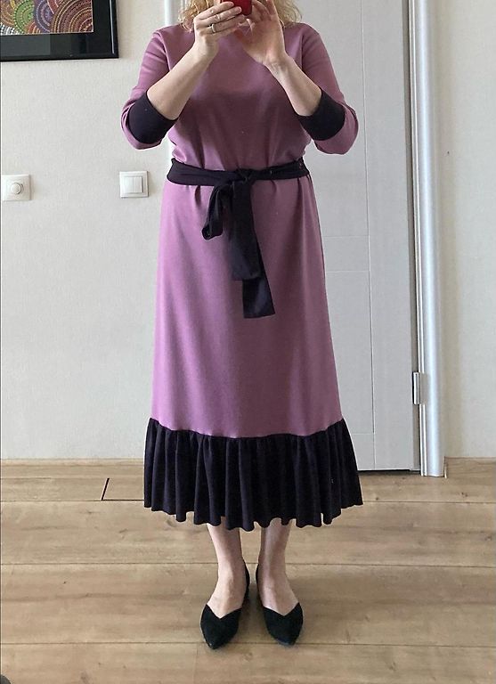 Moteriška smulkios vilnos suknelė su gėlių raštu. Suknelė turi užtrauktuką nugaroje ir malonų kūnui pamušalą. Smulkios vilnos audinys nesiglamžo, yra plonas ir šiltas. Gali būti dėvima kaip suknelė arba kaip sarafanas su golfu, puikiai derinama tiek su batais, tiek su balerinkėmis, tinka tiek kasdienai, tiek šventėms. Ilgis apie 113 cm, krūtinės apimtis apie 86 cm.