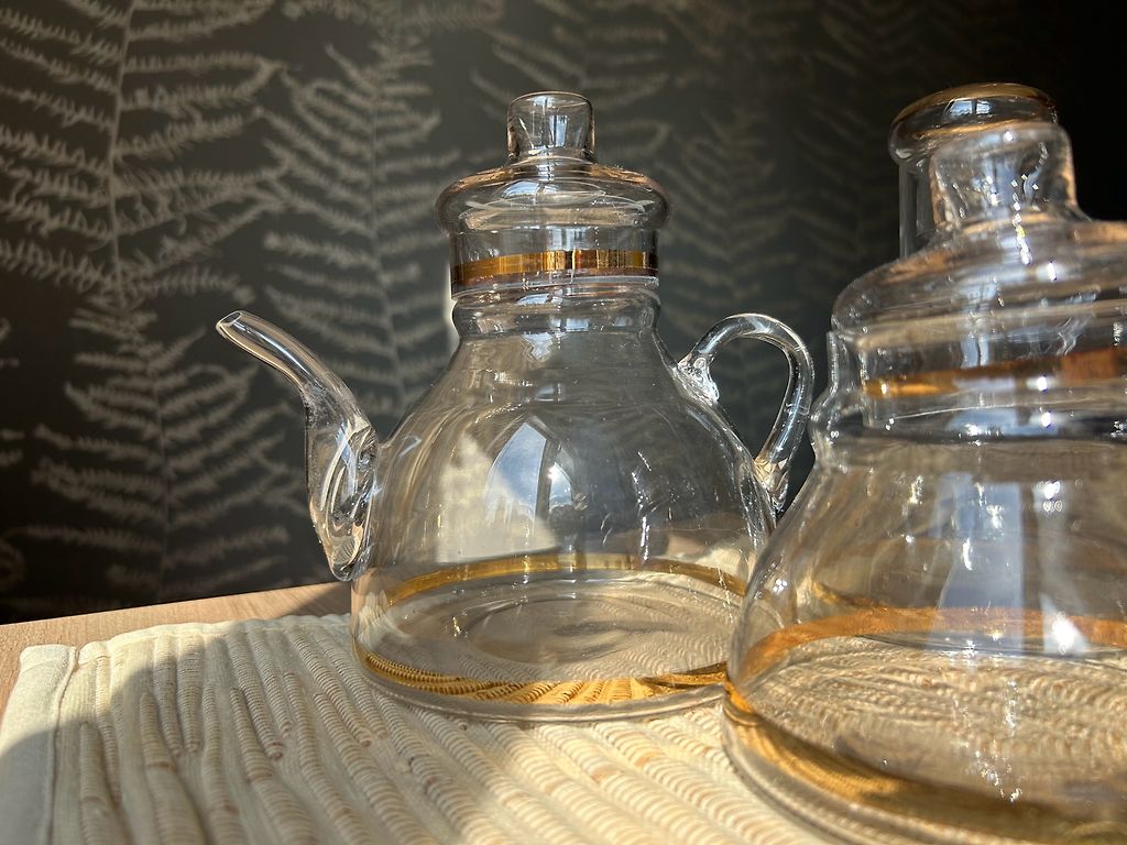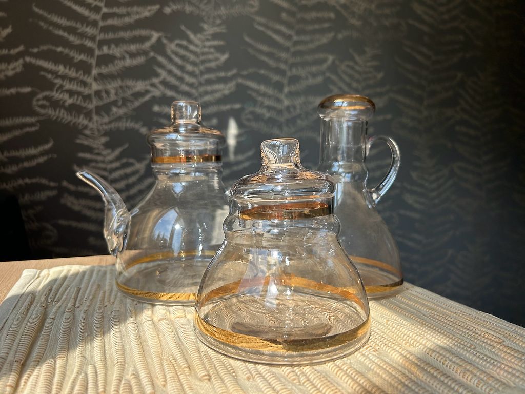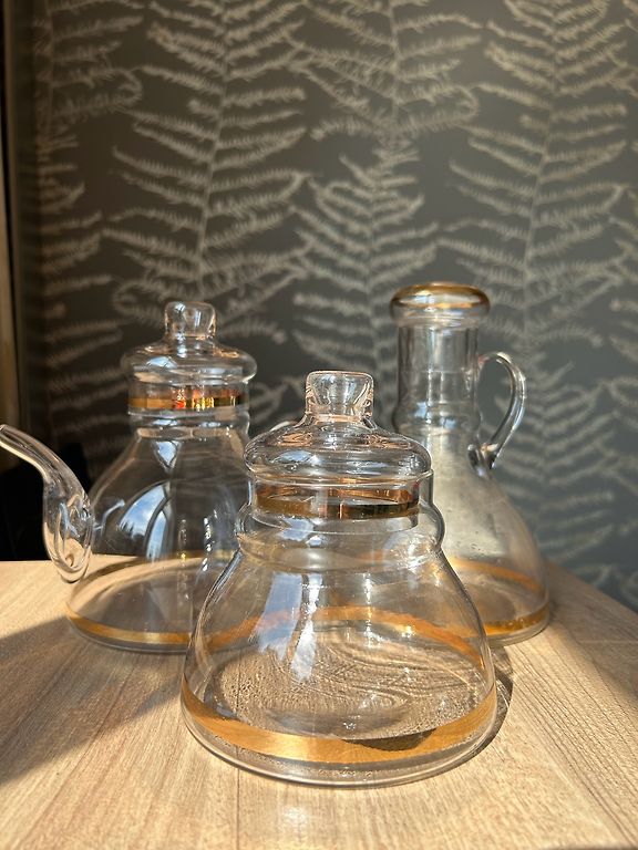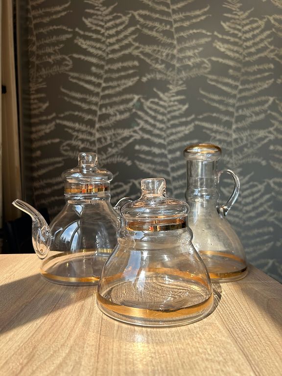 A cookie jar with golden circles and leaves. Suitable for tea sets from the 60s - Marijka, Jūrmala, Viola. Manufactured at the Riga porcelain and faience factory. In good condition, without damage. Slight shape deformation. Porcelain and faience factory 2nd grade stamp.