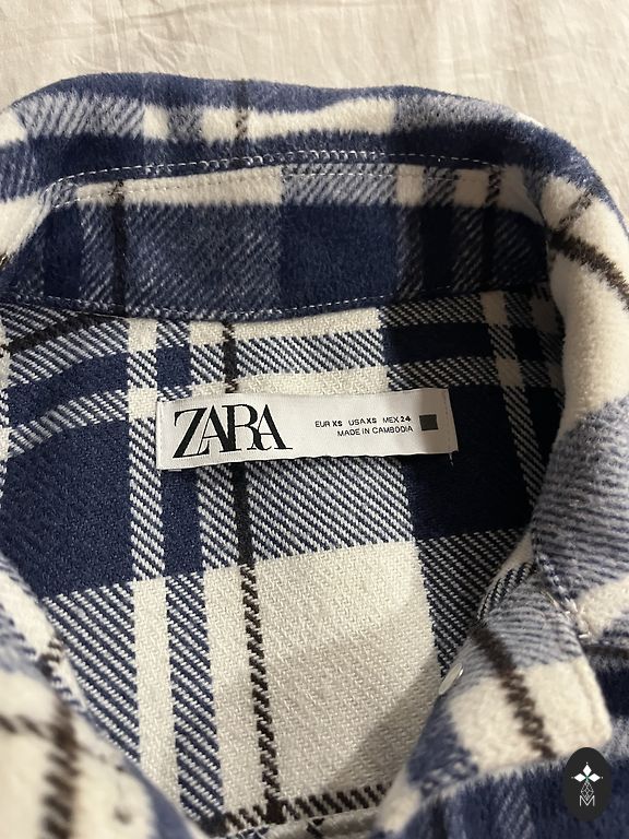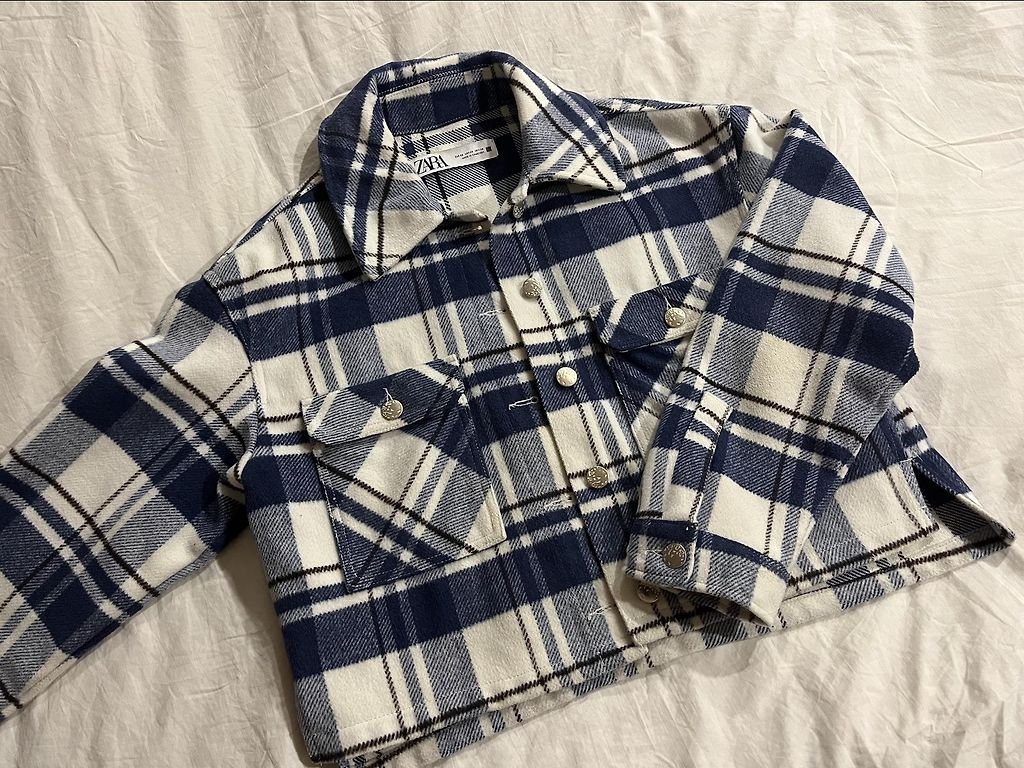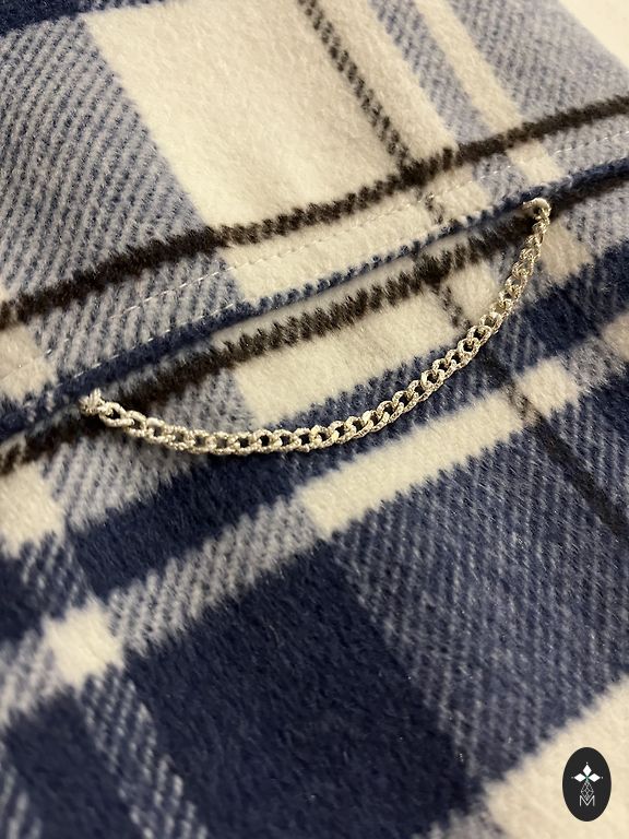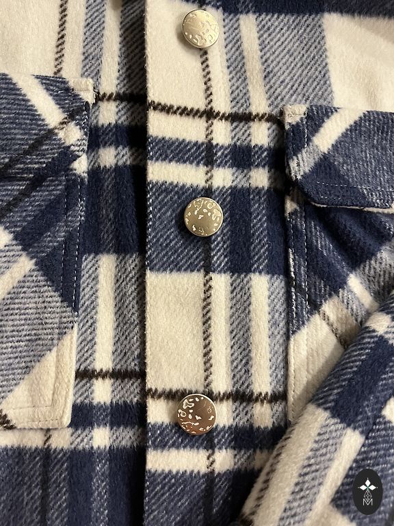 Mėlynai dryžuota su sagomis (neužsegama, užmaunama per galvą), ilgis 104 cm, krūtinė 39 cm.