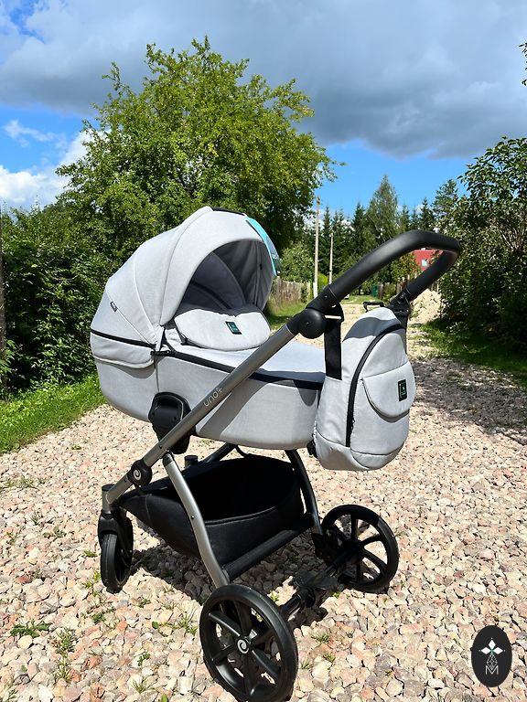 Komplektā ietilpst pārnēsājamais kulbiņa ar ventilāciju kapucē un vēja aizsardzību ar skatlogu , ratiņu bloks ar aizsargapvalku, autokrēsliņus, šasija ar iepirkumu grozu, matracis (iedošu arī 2 ūdensnecaurlaidīgus palagus), lietus pārsegs, moskītu tīkls, glāžu turētājs un ISOFIX bāze autokresliņam. Sīkāka informācija pa telefonu.