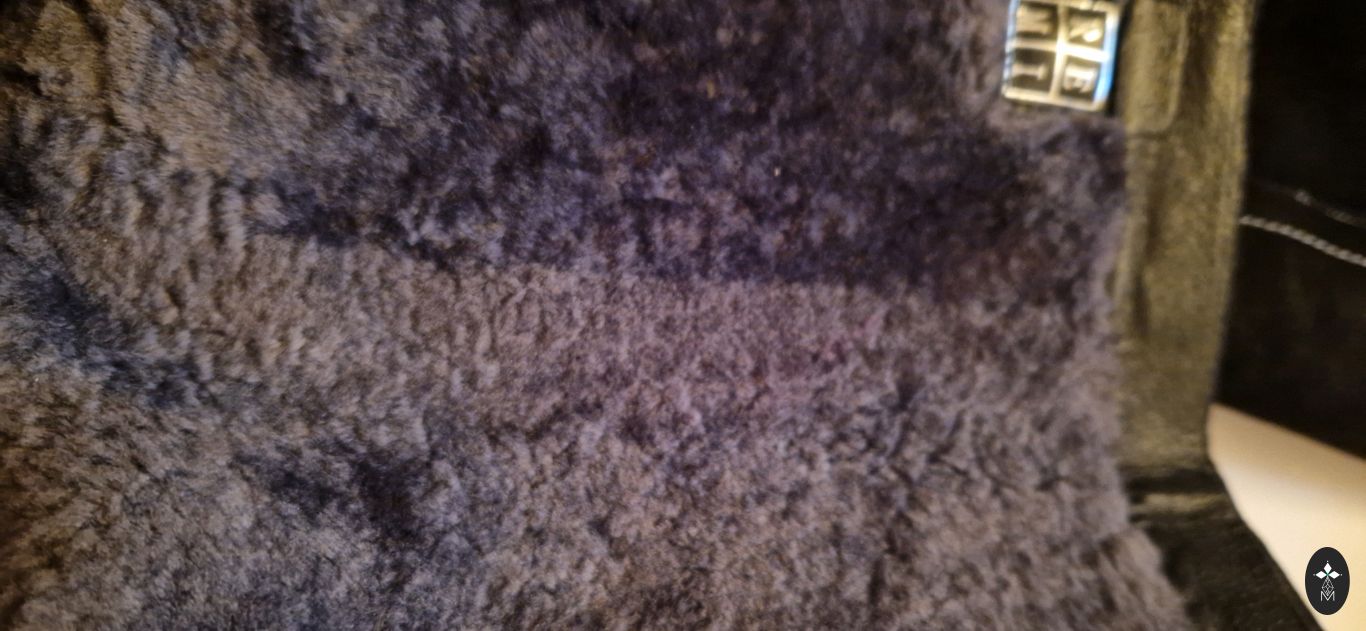Materiāls — dabīga zamša, iekšpusē mīksta jēra vilna.