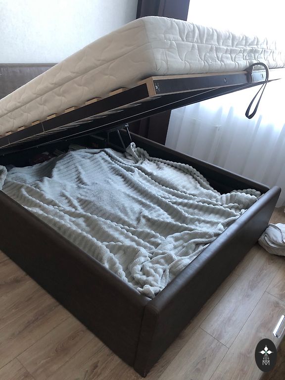 Gulta ar matraci 90×200 kaķis apstrādājis polsterēto daļu, bet gulta pilda savas funkcijas, matracis uz koka redelēm. Pašizvešana.