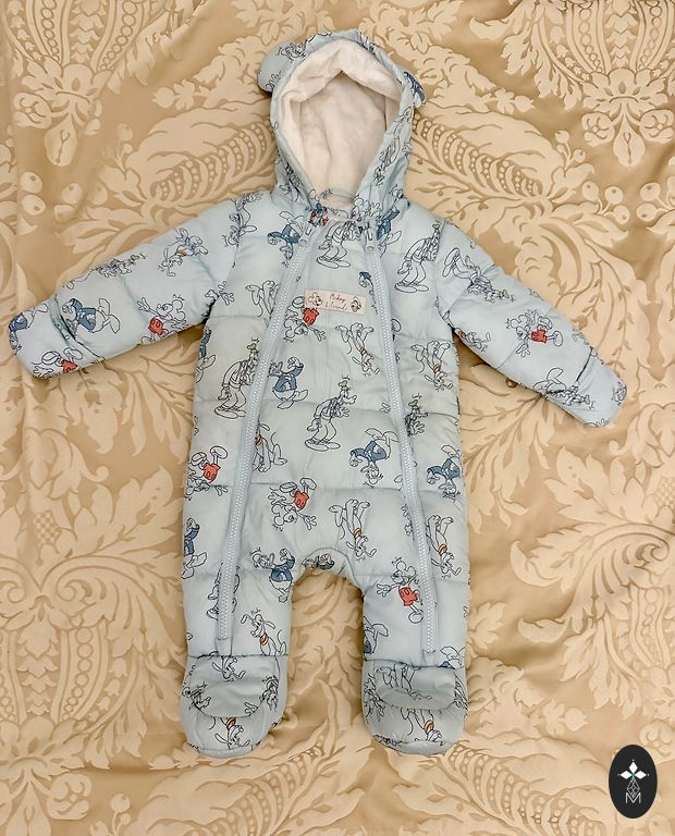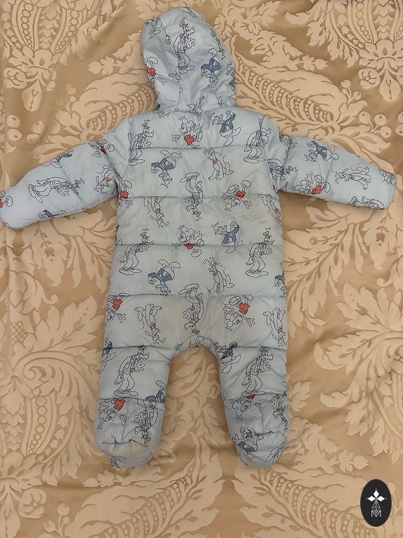 Soe ja pehme kapuutsiga vankrikombinesoon. Sees on fliiskangas, kasutatud beebi hällis. Märgitud suurus 62-68, kasutasime alates 3 kuu vanusest ja oli jalgadele hea varu. Kokkuvolditavad varrukad.