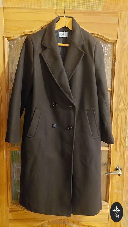 Pruun väga õhuline kerge mantel/jakk, veidi üle põlve (kui pikkus on 175), värv pruun, boro/pruun. Suurus 16 sobib kindlalt, saab alla panna paksu kampsuni. Mõõdud: rinnaümbermõõt 64cm, puusaümbermõõt 65cm, pikkus 105cm. Kinnitus lukuga + magnetnööbid. On taskud ja suur kapuuts. Alumise nupu juures on defekt, kulunud kangas (nähtav pildil sildiga), igapäevaselt kandes defekt ei ole nähtav.