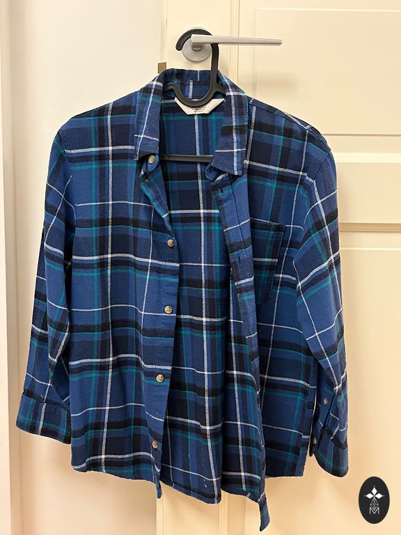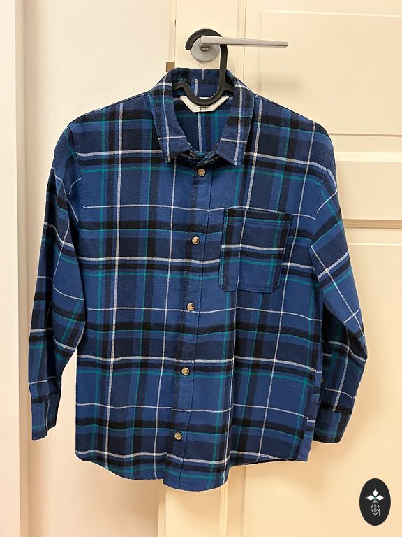 Size 104 shirts (green H&M, beige KappAhl). The green one has been worn more, but is still in very good condition. Looks great with pants, a white T-shirt, and these shirts unbuttoned on top.