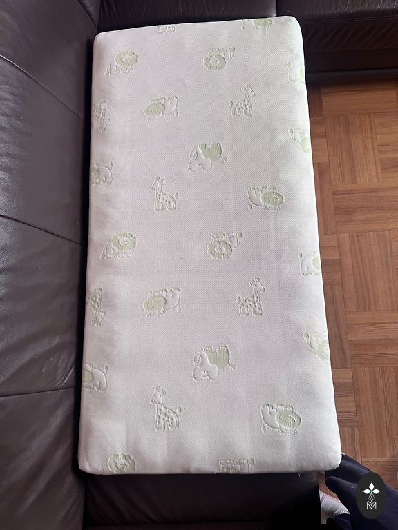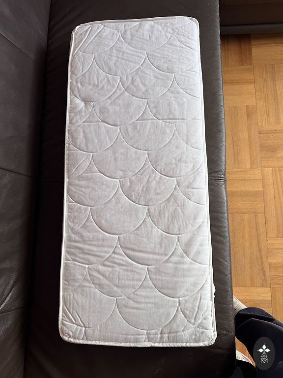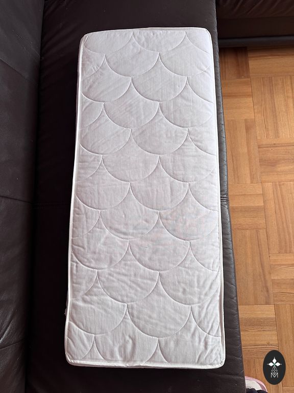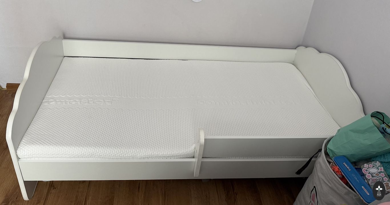 Несколько раз укладывал в кроватку спать только когда был младенцем, а позже немного играл при необходимости! Кроватка куплена новой и практически стоит неиспользованной! При стоянии и лазании внутрь и наружу появились небольшие дефекты! (фото) Я использовал ящик для белья! Матрас тоже в принципе новый, только в месте головы есть износ (фото) от желтого простыни! Думаю, что можно отстирать. В комплекте также низкая боковина кровати, которая пригодится на более длительное время. Цена за кровать и матрас вместе!