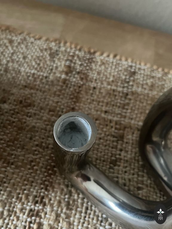 Keturi stiklo žvakidės ir viena žvakidė iš žalvario su sidabro danga.
