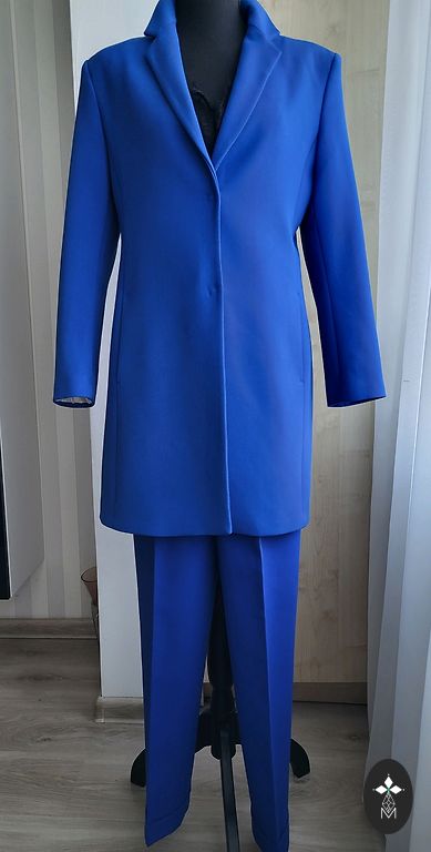 Sirged püksid ja oversize jakk. Standard suurus 38, püksid sobivad kuni 174 cm. Kvaliteetne bränd - Emo. Koostises viskoos ja polüester, seetõttu ei kortsu, jakil on vooder ja õlapadjad, püksid lukuga ja nööbiga. Pükste vöökoht (kõrge) - 39 cm. Jakilt puudub nööp, vajadusel saab lihtsasti külge õmmelda.