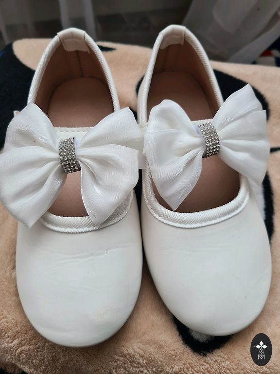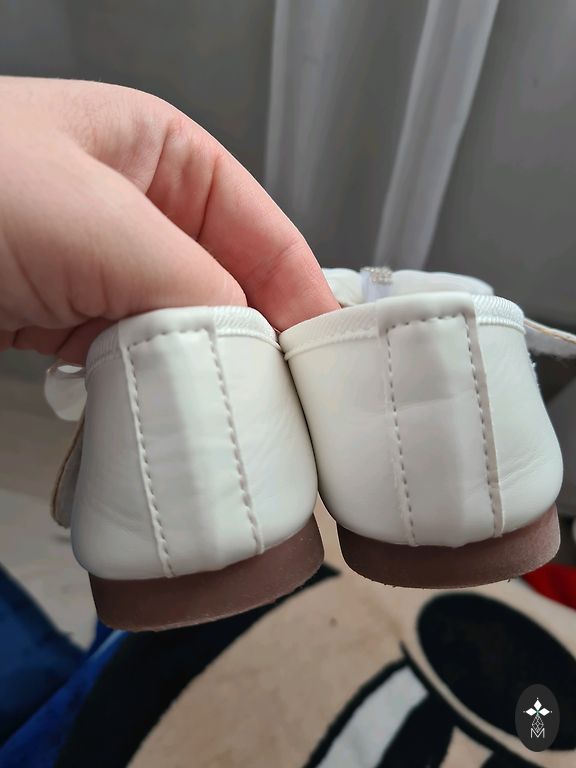 Белые кожаные туфельки Geox, размер 30, длина внутренней стельки 19,5 см, в хорошем состоянии. Есть небольшие следы носки, видно на последнем фото, но когда туфли одеты, этого совсем не видно. Туфельки мягкие, удобные, носили только в помещении.