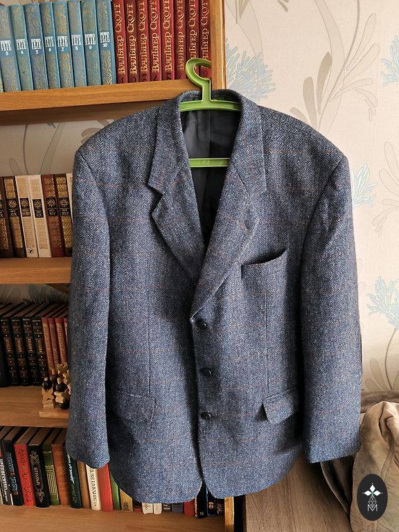 Turo Tailor jacket, dark blue, 60% wool. Circumference under the armpits 104 cm, shoulders 46.5 cm, sleeve from shoulder 62.5 cm, length 79.5 cm.