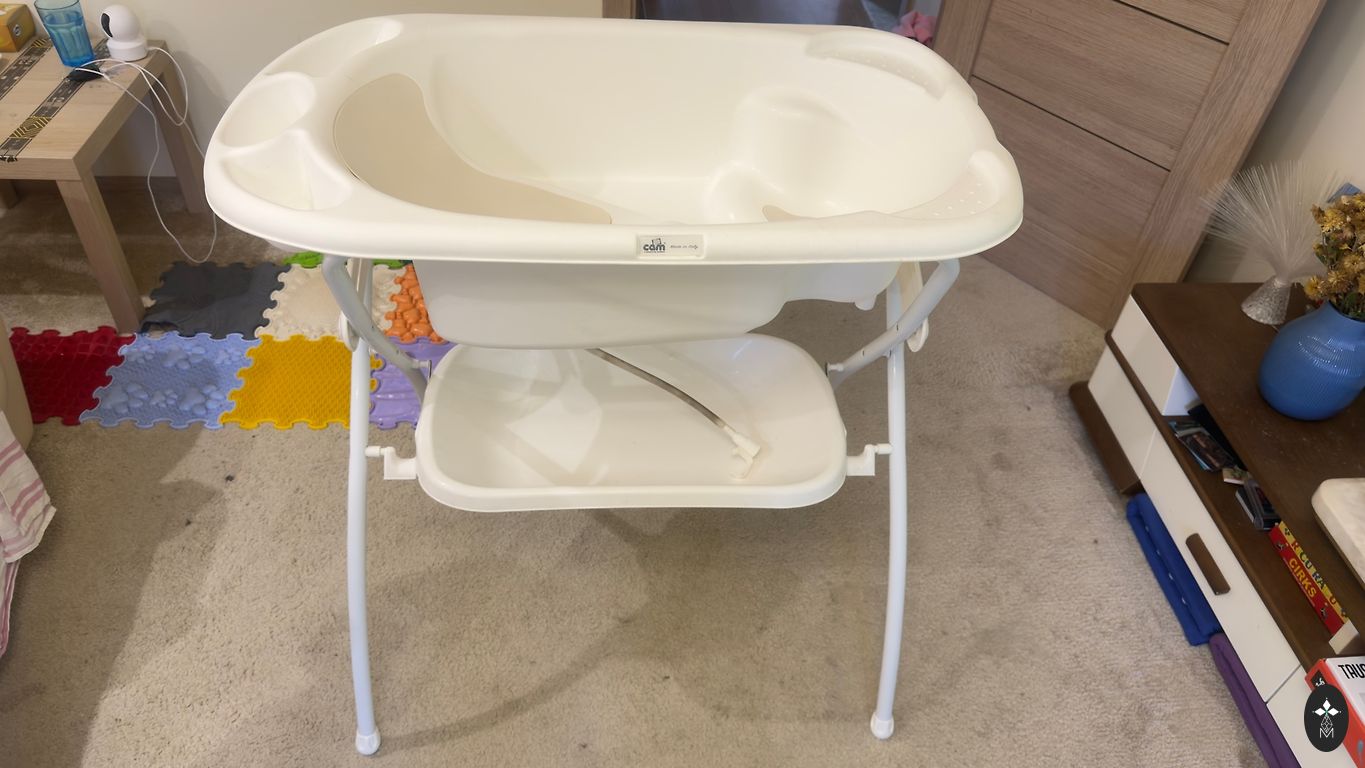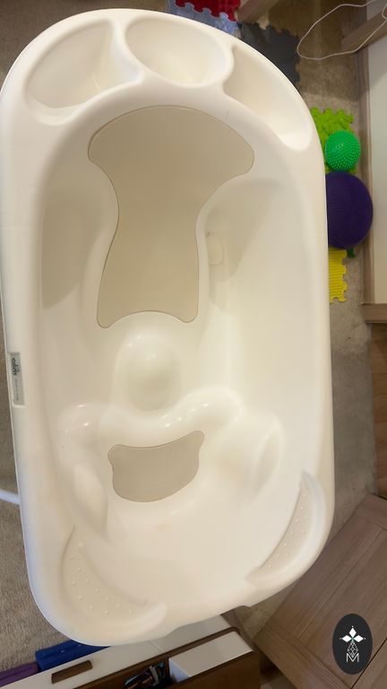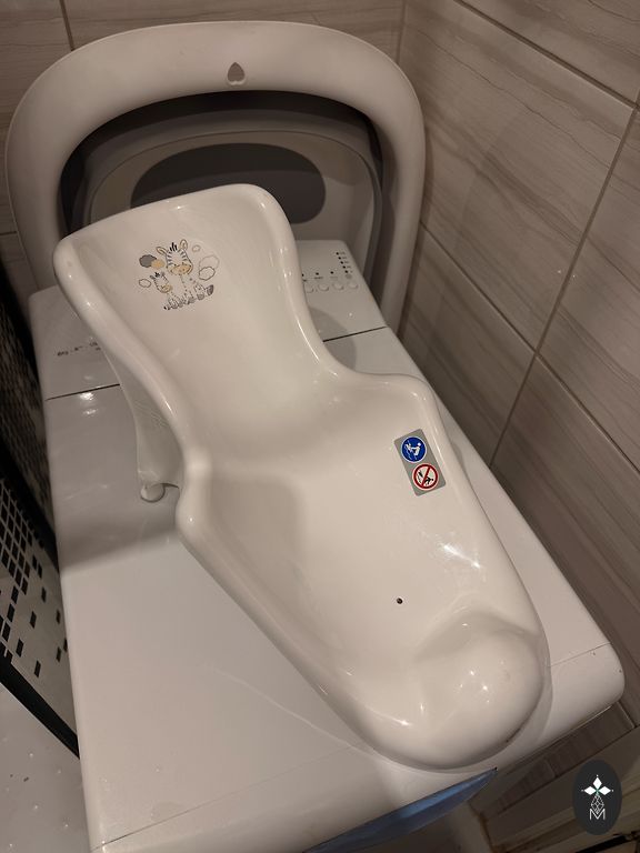 Bērnu vannīte, ļoti ērta, var salocīt un aizņem maz vietas. Pluss krēsliņš ir ļoti ērts, kad bērns vēl nesēž pārliecinoši. Ar līplentēm.