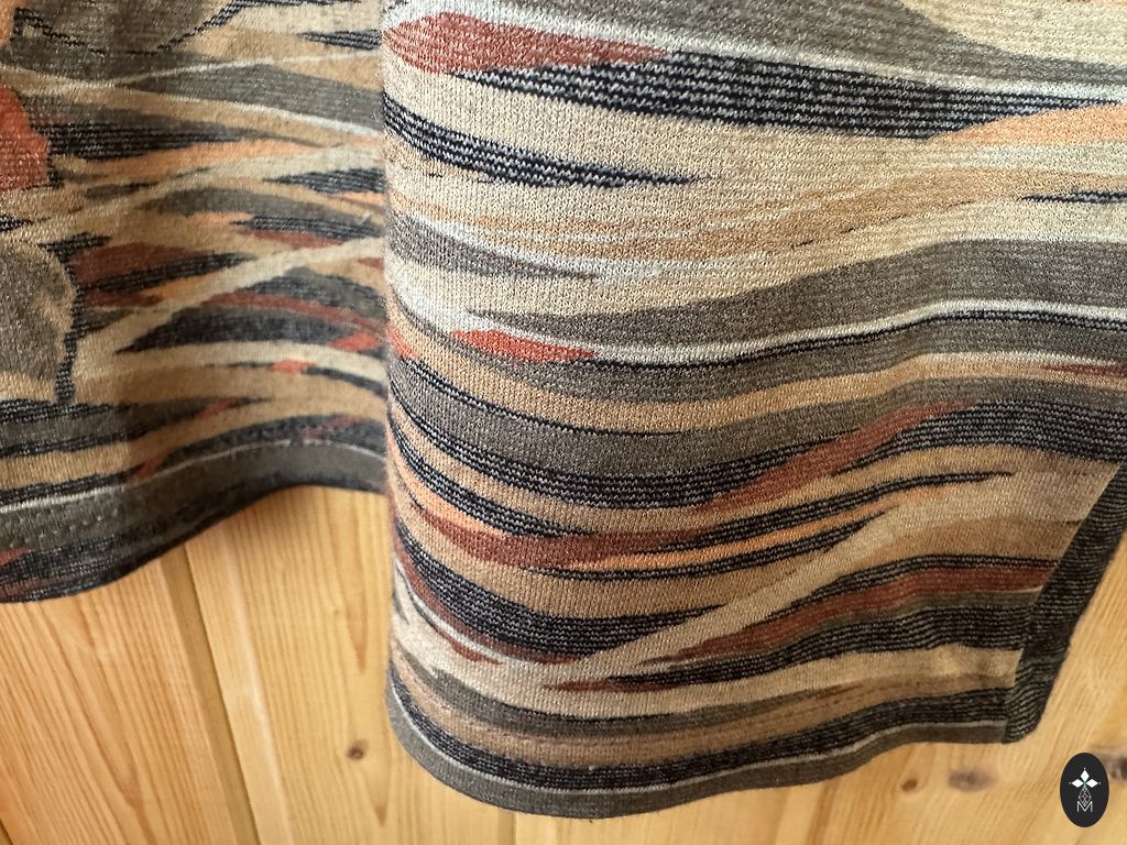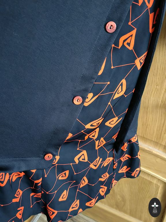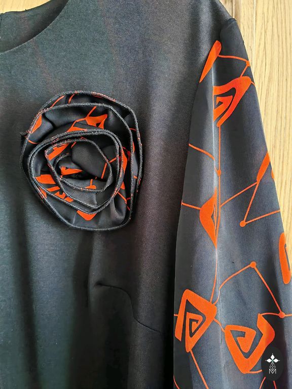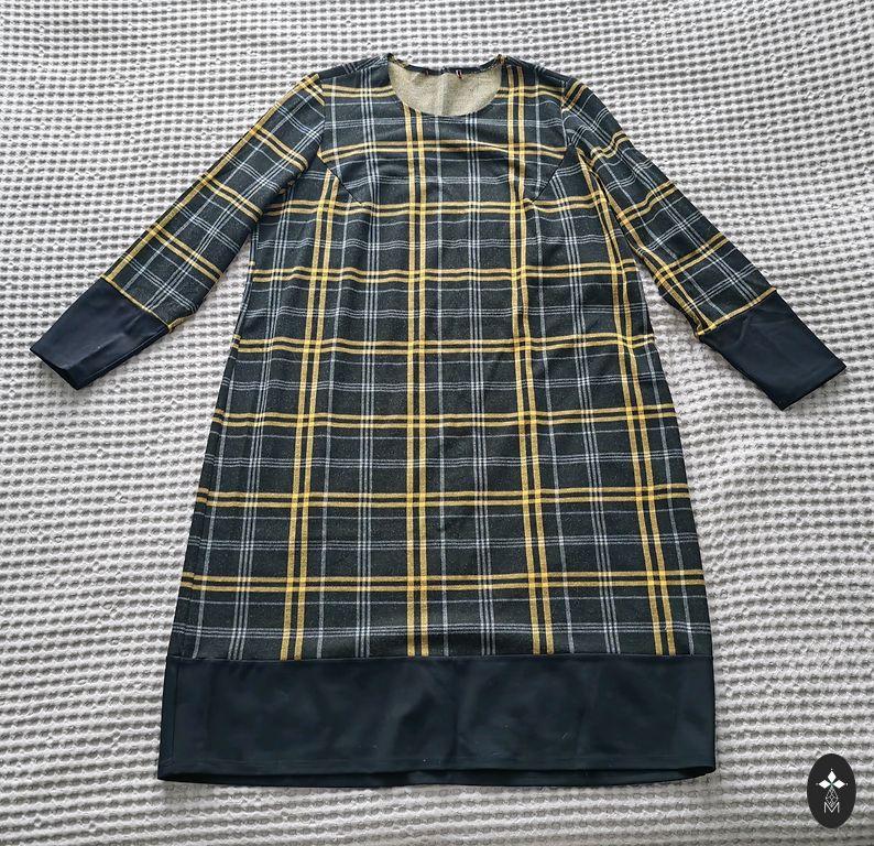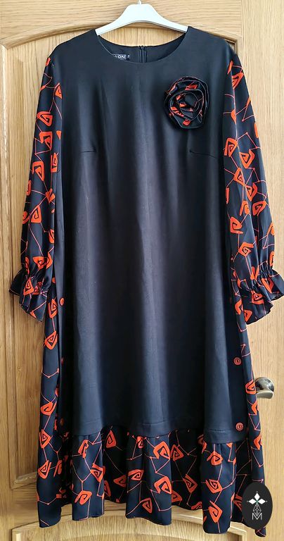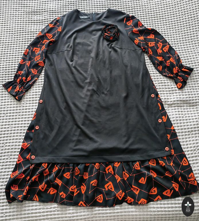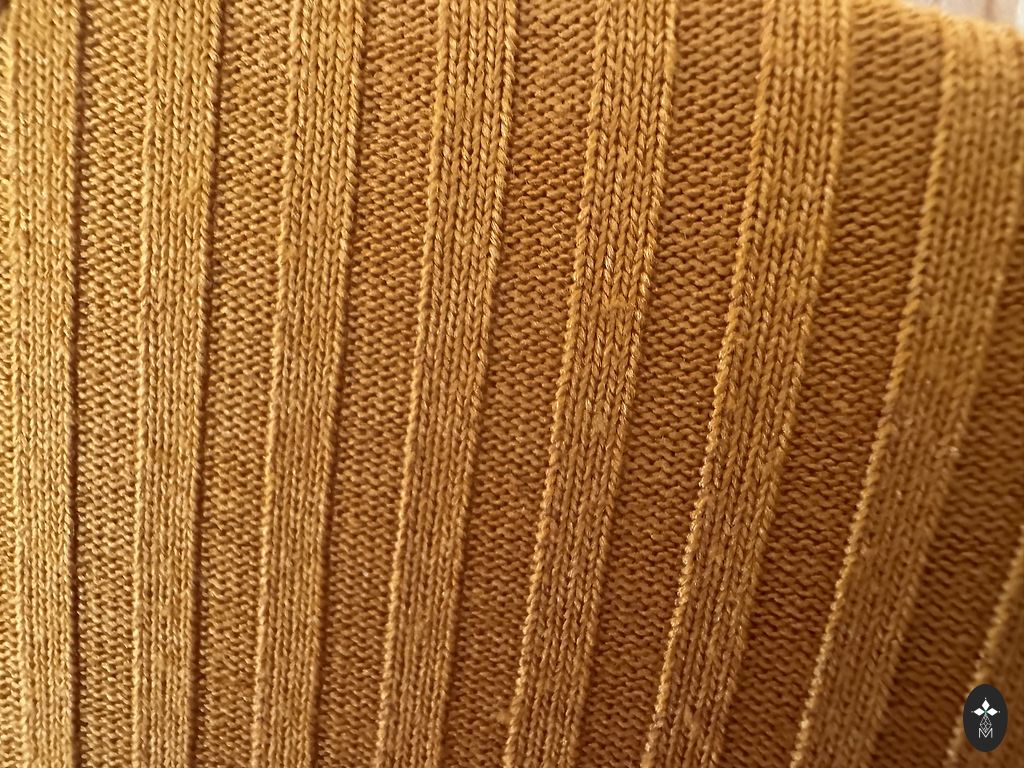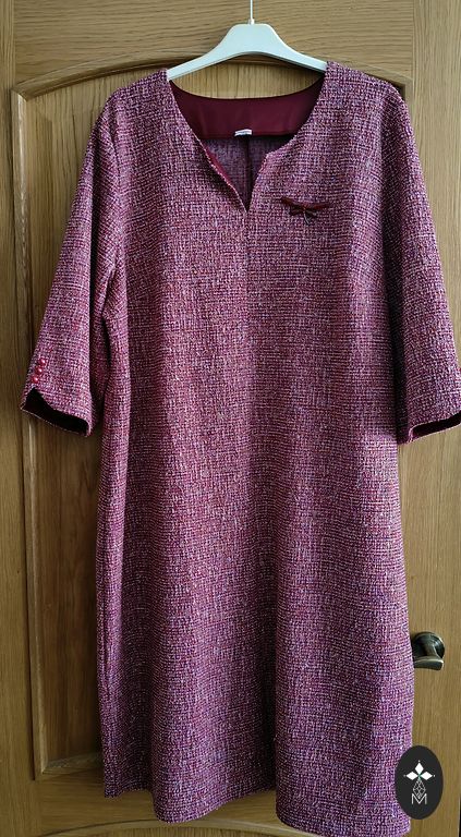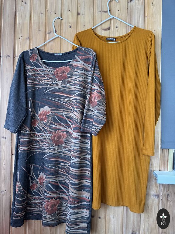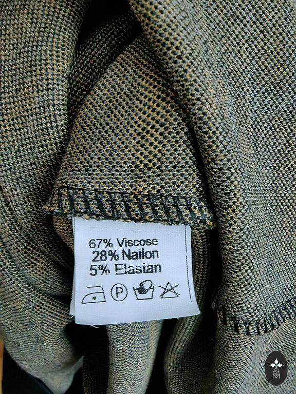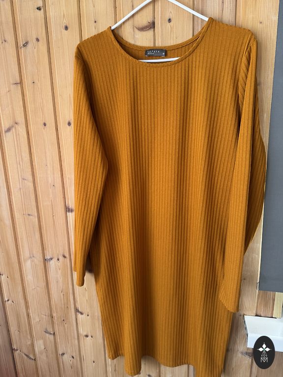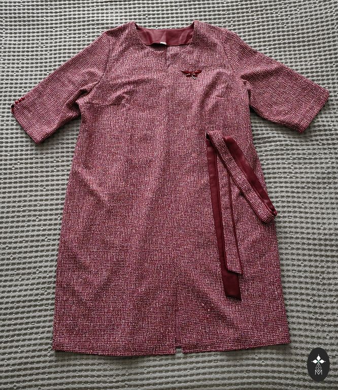 Tumedam telliskivi toon. Keskmise paksusega. Viskoos. Nailon. Elastaan. Pikkus 109. Kaenlaaluste ja puusade all 53-55cm.