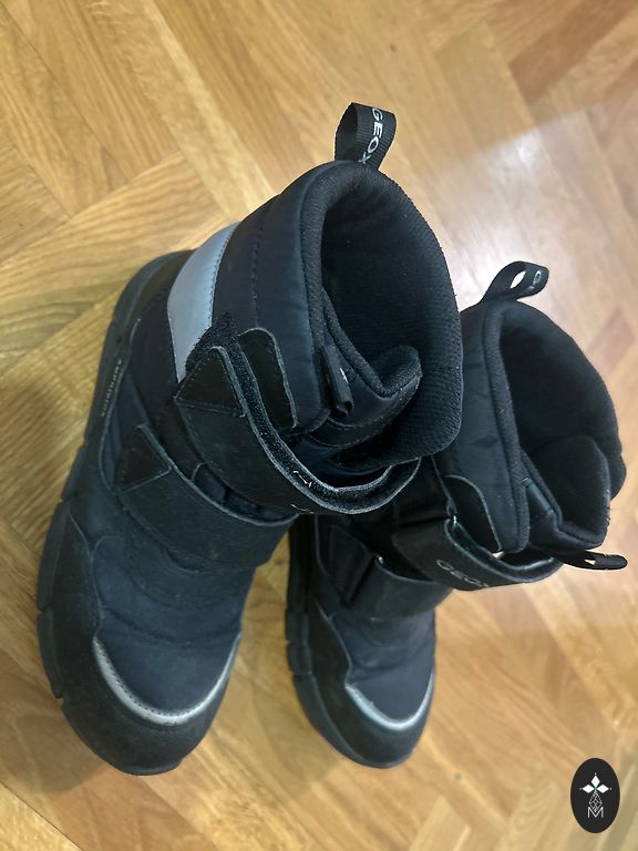Ziemas zābaki bērniem, nēsāti, bet labā stāvoklī. Ūdens necaurlaidīgi, mākslīgā āda.