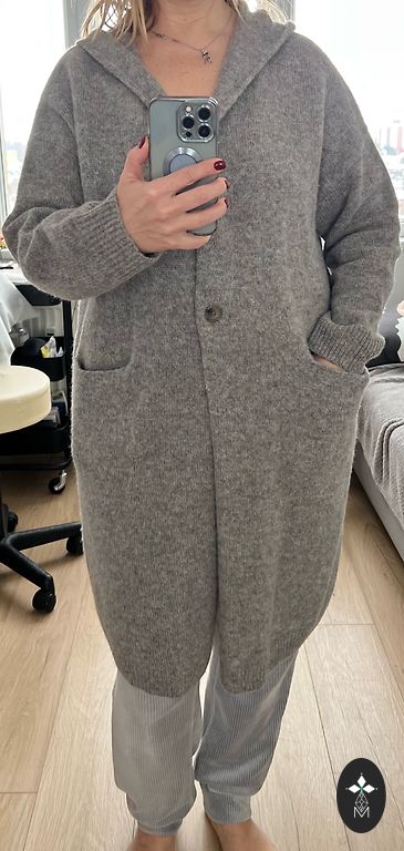 Кардиган COS темно-зеленого цвета из 100% шерсти.