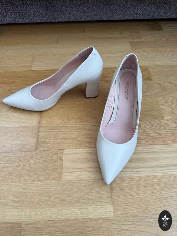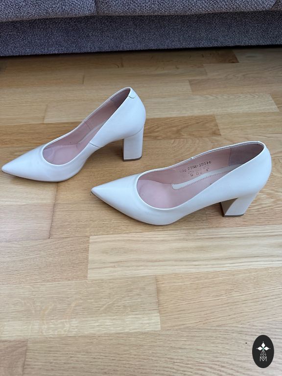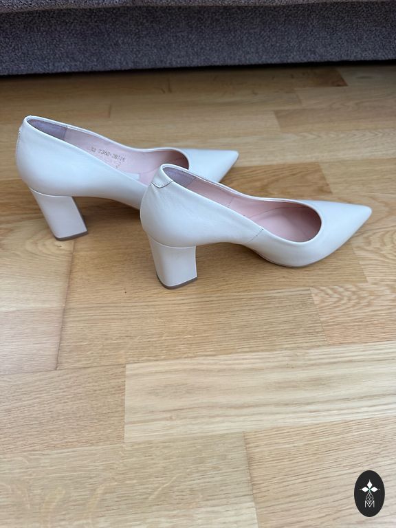 Melnie papēžu uzgaļi ir mainīti pie kurpnieka-kopš tā laika nav vilktas. Nēsāšanas pazīmes izteiktas ir tieši pie apakšpēdas, kur saskare ar zemi, pārējais viss ļoti labi.