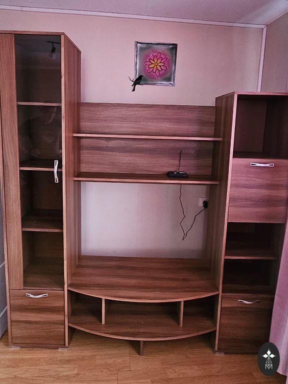 Parduodu baldų komplektą. Galima įsigyti ir konkrečią dalį, dėl kainos susitariant privačiai. Atskira komoda, sekcijos dalis, spinta su vieta „kabinamoms“ drabužiams, atskira spinta-lentyna. Visas komplektas 300 eurų.