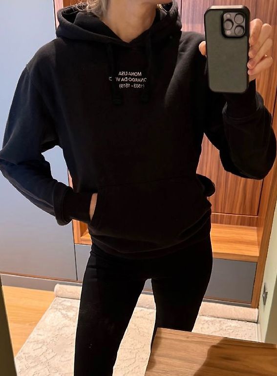 Melns sporta tipa džemperis ar kapuci ar mežģiņu dekorēšanu