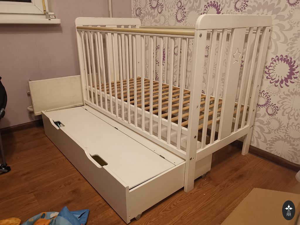 Bērnu gūlta. Derēs apmēram līdz 6mēnešu vecumam, novietojama, blakus gūltai.