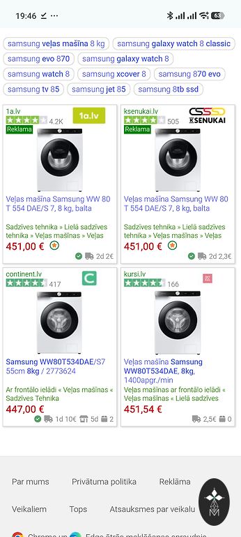 | Tehnikas veids | Veļas mašīnas |