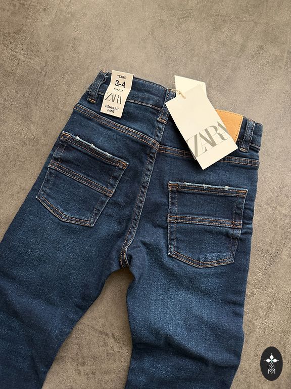 Новые джинсы slim fit с биркой, так и не надевали. Указан размер 12-18 мес, на рост 86 см, скорее для стройного ребенка. Ткань мягкая, немного эластичная. Талия регулируется резинками и пуговицами.