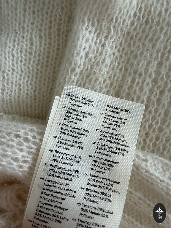 Max Mara Leisure sviiter, mis on valmistatud 100% neitsivillast - tihedast, pehmest ja soojast kõrgekvaliteedilisest esmasest villast. Kootud kangas on ühtlane, korraliku kudumisega, hoiab hästi vormi ja ei näe välja "väsinud".
