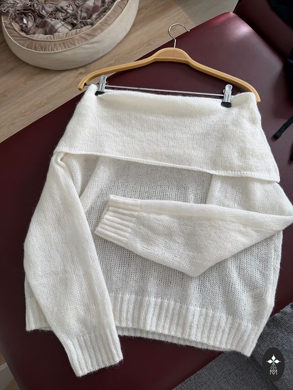 Модель с воротом (mock neck), длинным рукавом и прямым силуэтом. Посадка комфортная, не обтягивающая — типичный стиль линии Max Mara Leisure, ориентированной на сдержанный итальянский casual.