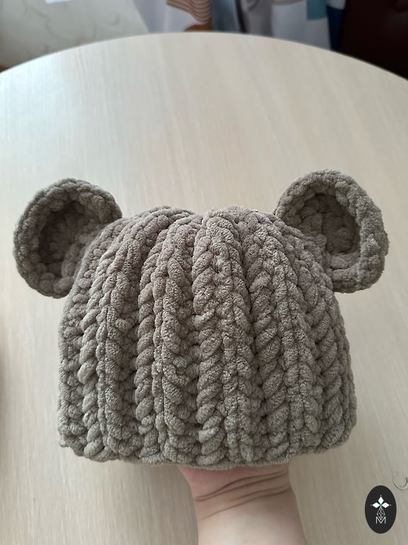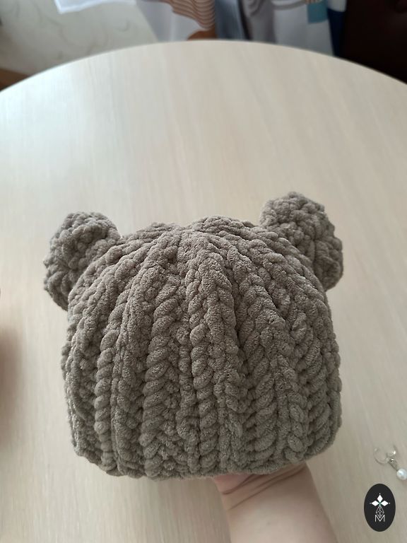 • Materiāls: Alize Vealutto, mīksta un silta dzija • Izmērs: 0–3 mēneši, galvas apkārtmērs ~40–42 cm