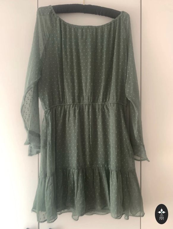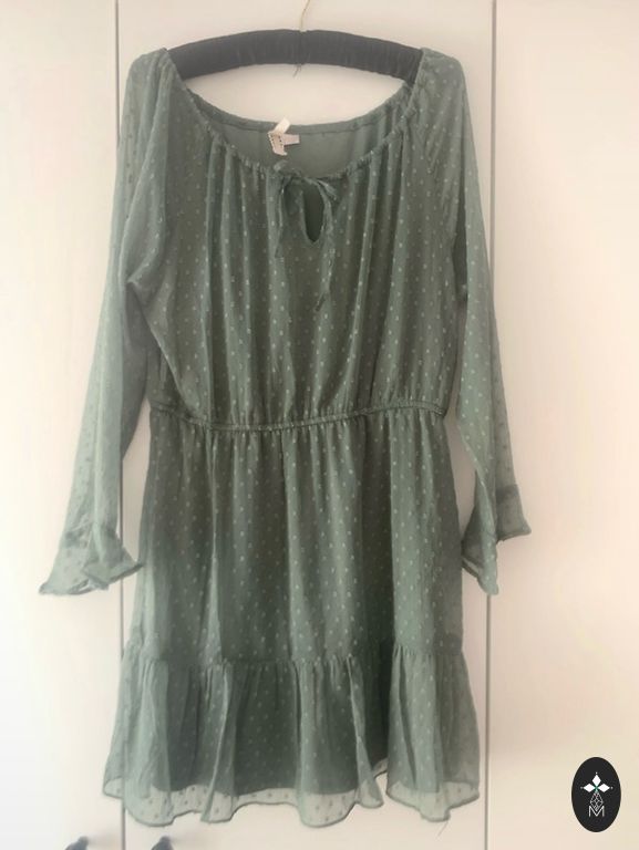 H&M priežu zaļa garā satīna kleita ar jostu