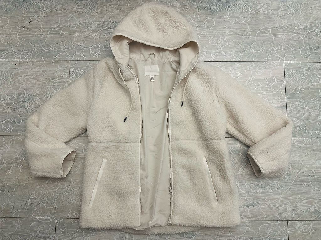 Length-58cm, sleeves from collar-70cm, chest-100cm, hips-95-100cm. Size is more S/M than L as on the tag. Sweater is new.