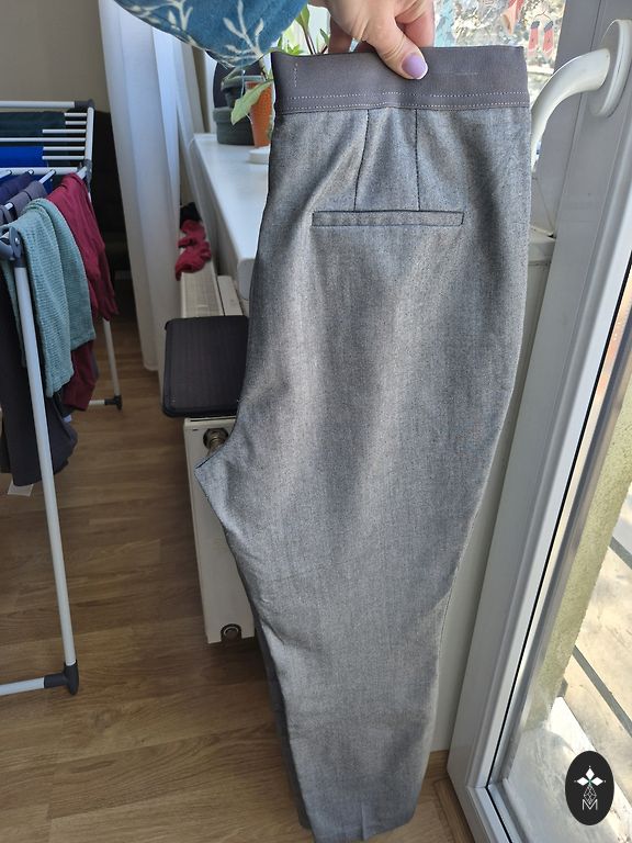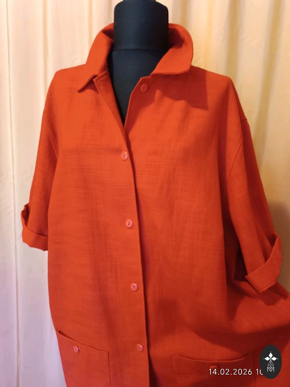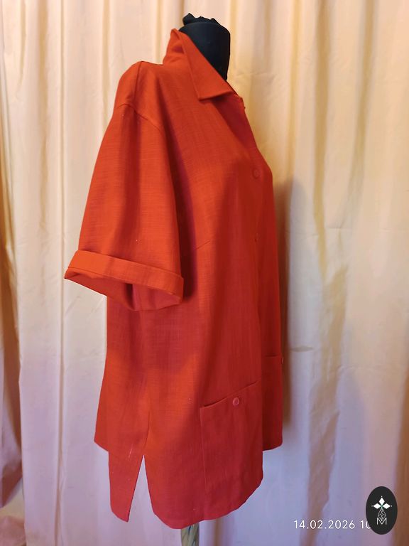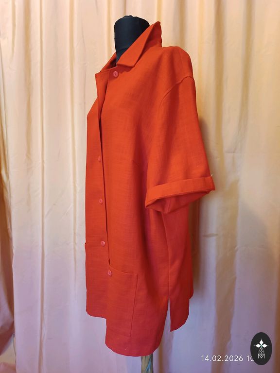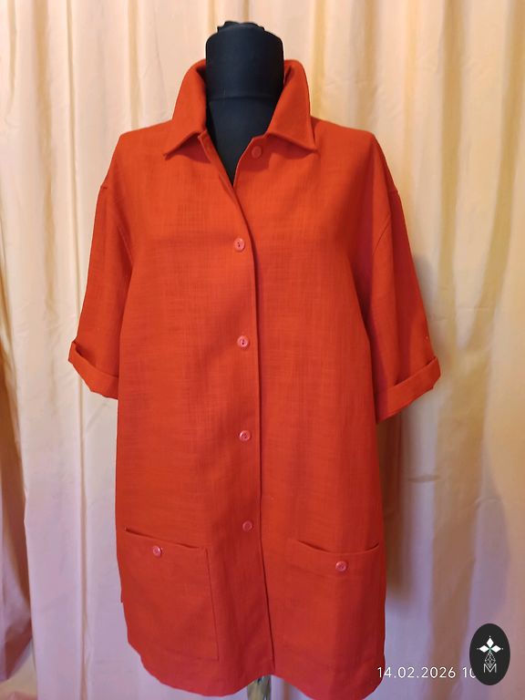Длинная, серая блузка.