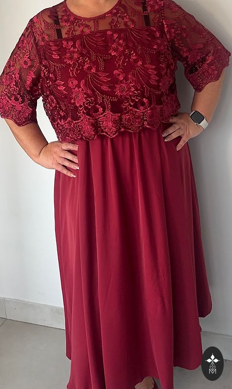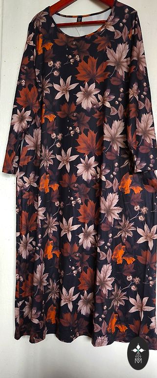 Krūtinė 94 cm, juosmuo 80 cm, klubai 100 cm, ilgis 105 cm, medžiaga šiek tiek tampri.