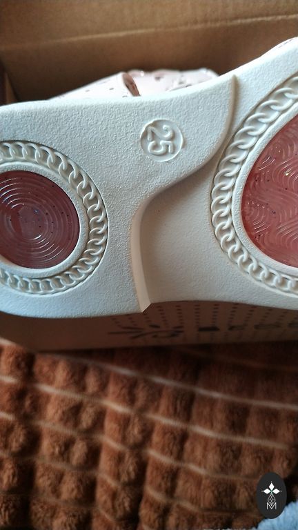 Foot length from edge to edge is 17cm. In some places, the sparkles are worn off. The sole lights flash.