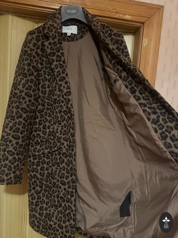 Minkštas ir klasikinis paltas su kišenėmis, pamušalu ir diržu. Dydis 38.