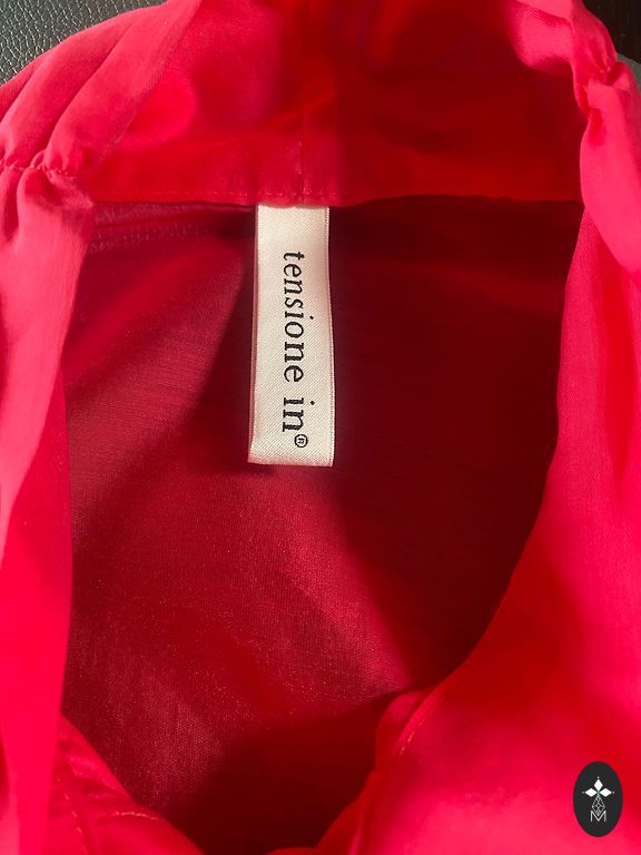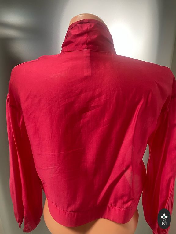 Red blouse with flared sleeves featuring a slit. Size indicated as L. Measurements: Length from shoulder - 65cm Chest - 51cm Waist - 48cm Hips - 55cm Sleeve length from shoulder - 69cm