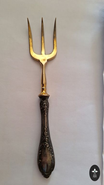 Spoon from the USSR with a gilded coating - for salads and ... Length 22 cm.