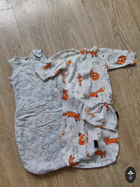Meškiukai, seilinukai ir valgymo indai.