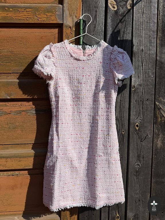 Это платье словно из той самой модной эры, когда образы были яркими, женственными и смелыми. В 2016 году такие мини-платья с объёмными рукавами и выразительной фактурой считались ультратрендовыми — и сегодня всё возвращается: 2026 = 2016. Стёганая ткань с узором в виде сердечек придаёт образу объём и делает его акцентным, а квадратный вырез и подчёркнутая талия формируют изящный силуэт. Платье не требует сложных сочетаний — оно само по себе центр образа.