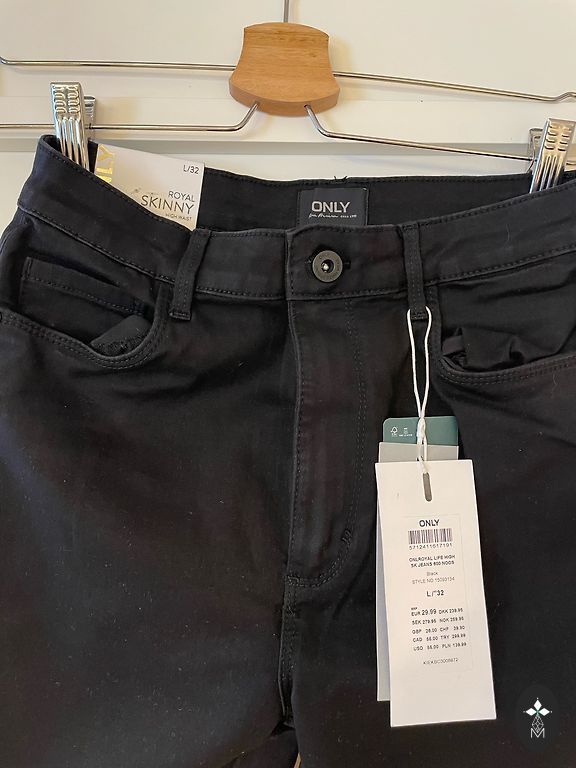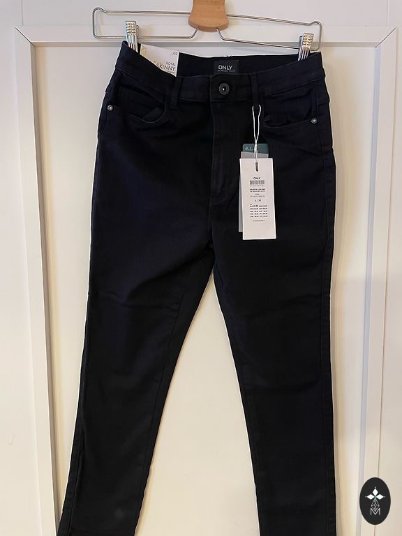 Uued, elastsed (pahkluu pikkusega) teksapüksid dekoratiivsete litrite ja narmastega pükste allosas. Suurepäraselt istuvad.