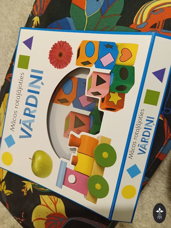• Veidnis: ar krāsainiem paraugiem (piem., vardīte, vista, ekskavators, karogs, smaidiņš, zieds, spirāle, ciparu vingrinājumi “Counting Topics 9-2=7)