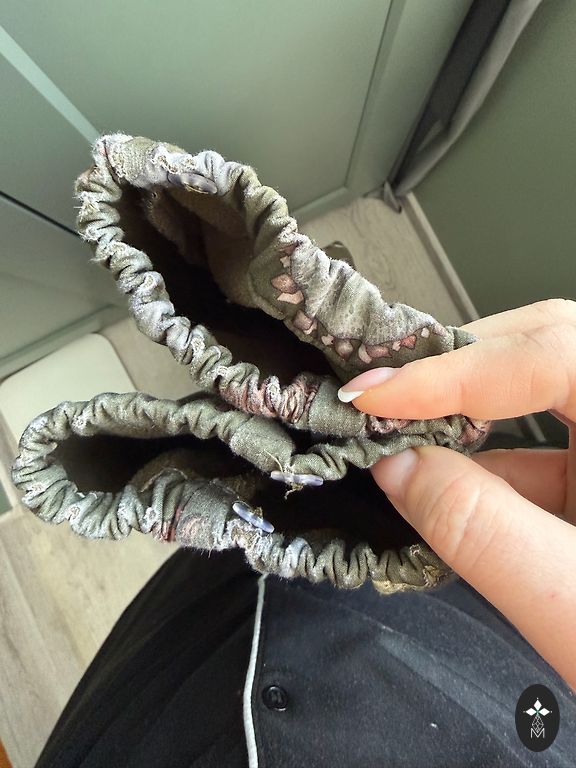 Väike auk põlve peal, kuid kandes täiesti märkamatu.