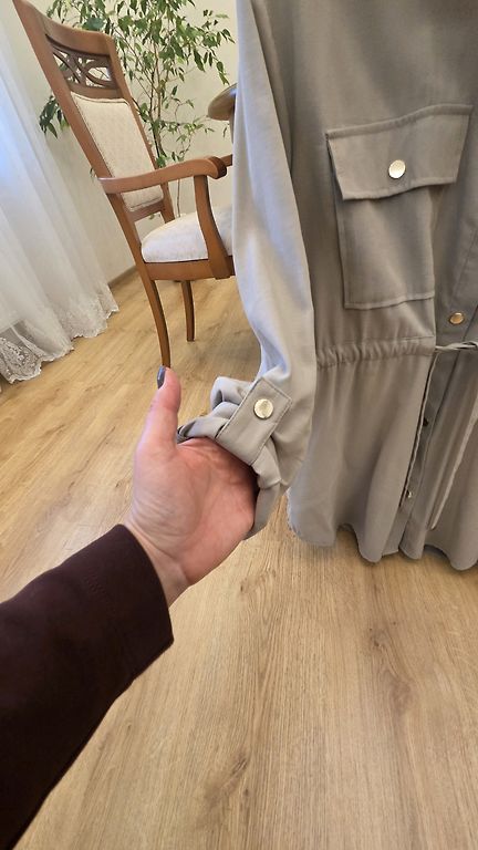 Mērot starp padusēm - 62 cm x 2, garums 71 cm.