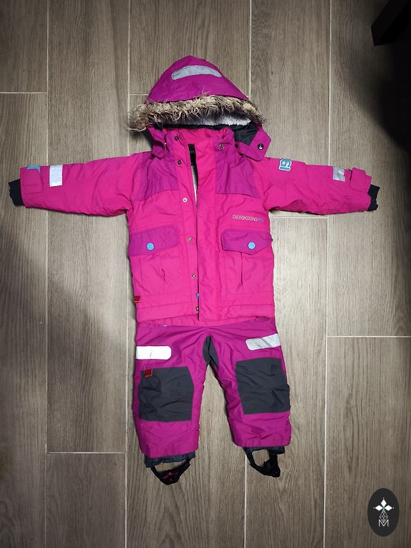 Saulains ziemas kombinezons. Vietām ir padilusi krāsa, bet kopumā joprojām labā stavoklî. Trūkums - nav gumiju.