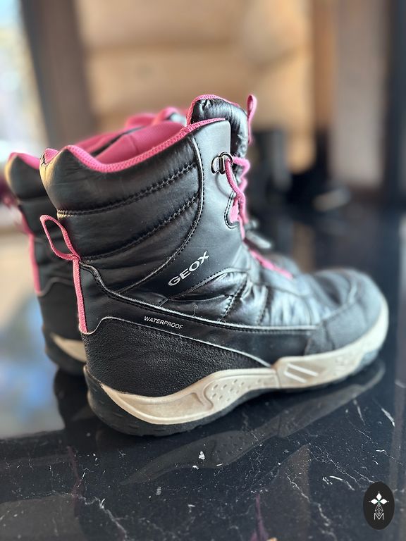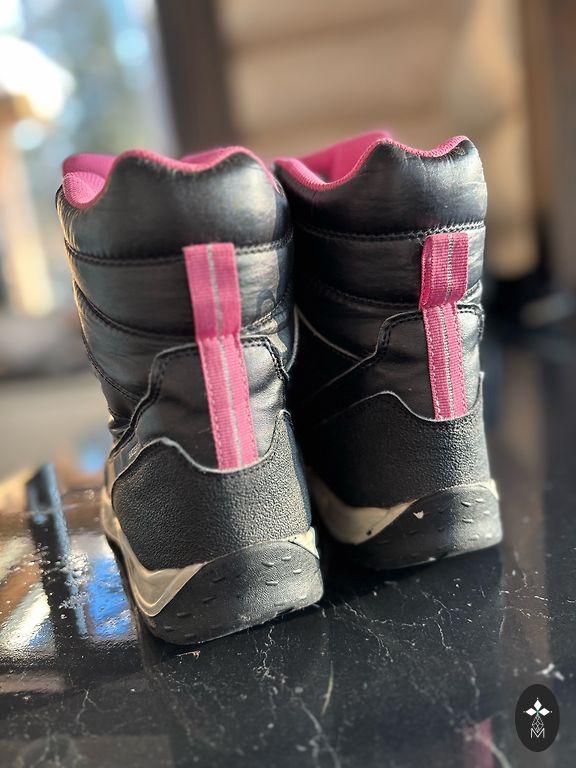 Strauji izauga kāja un pavisam nedaudz izdevās uzvilkt. Izmērs 24, iekšpeda ap 14 cm(grūti izmērīt precīzi)augsti,stabili,silti,mitruma izturīgi. Lipekļi līp labi.
