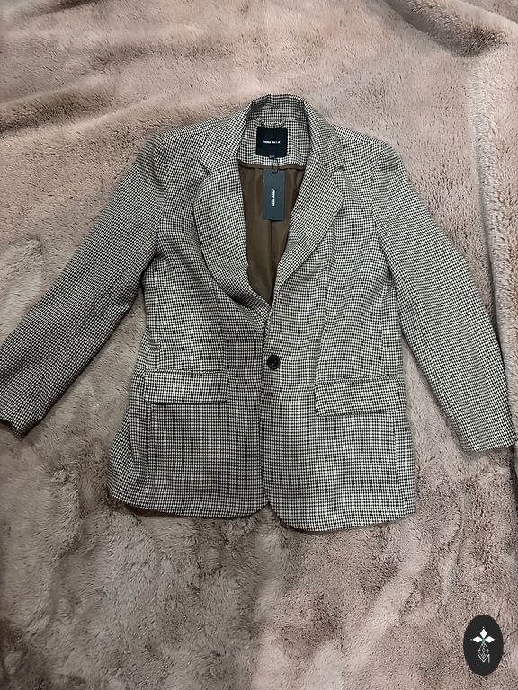 New jacket, purchased at Apranga store in December 2025, oversized model, size 38, without defects. Additional information about the jacket can be viewed on the Soulz website, and the jacket can be tried on at the Apranga store.
