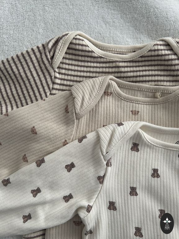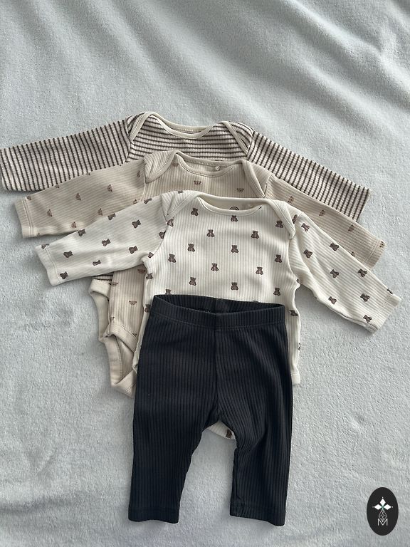 Šiek tiek naudoti kombinezonai/meškučiai. Buvo naudingi šiam šaltam orui, o šiltesniu metu galima dėvėti tik juos. Kaina kartu, bet galima ir atskirai.