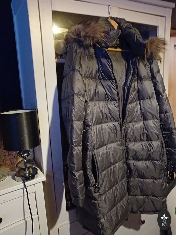 Lengvas, šiltas pūkinės paltas su diržu, tačiau gražiai atrodo ir be jo