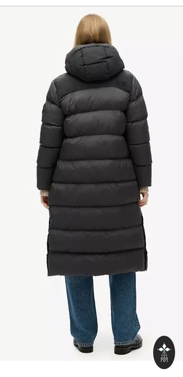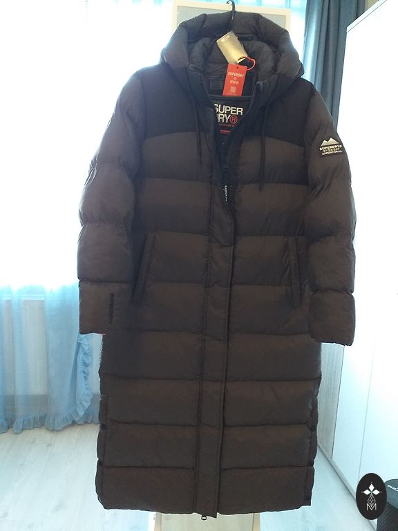 Labai šiltas. Su užsegimu ir diržu. Ilgis 113 cm, krūtinė 120 cm, rankovė nuo peties 76 cm.