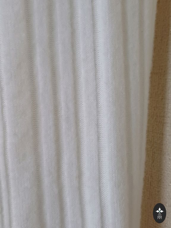 Sastāvs: 57% kokvilna, 40% poliesters, 3% elastāns. Pateicoties kokvilnai, audums ir elpojošs, bet elastāns nodrošina ideālu piegulšanu figūrai.