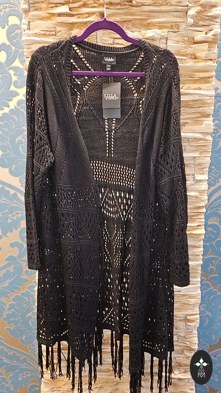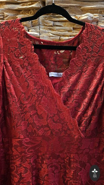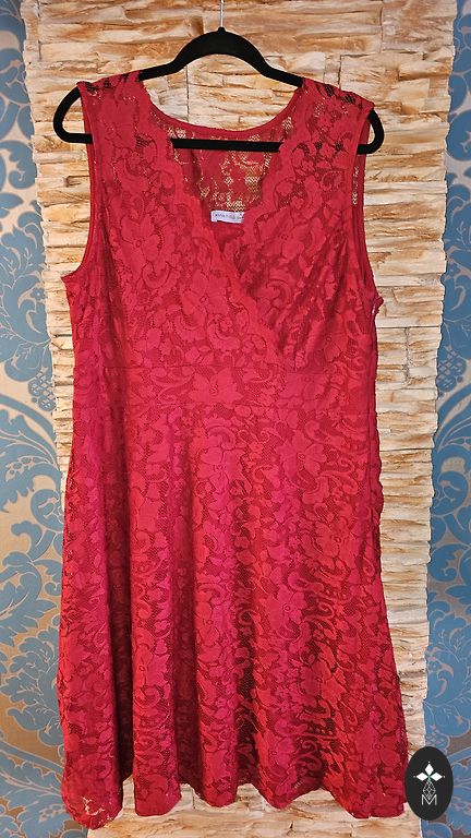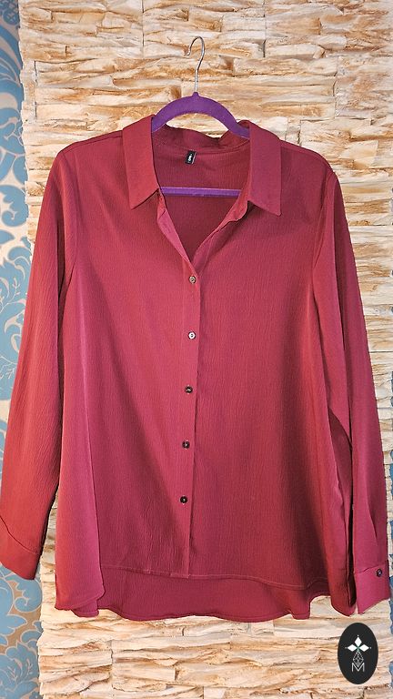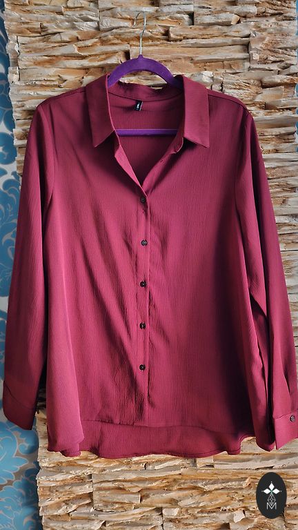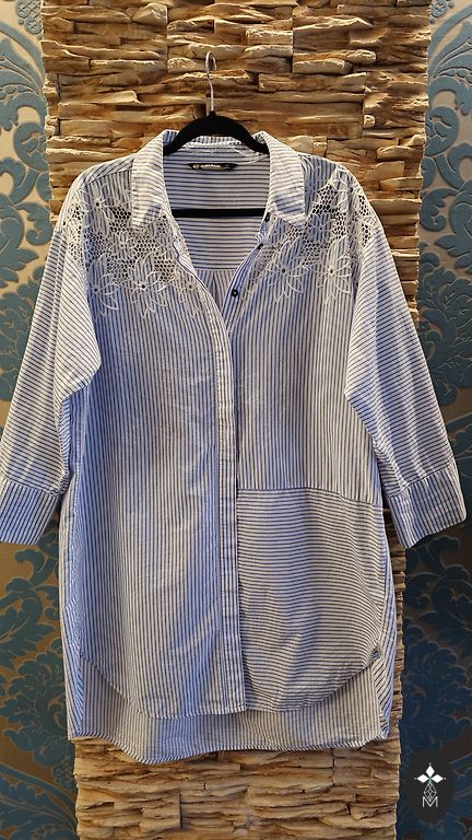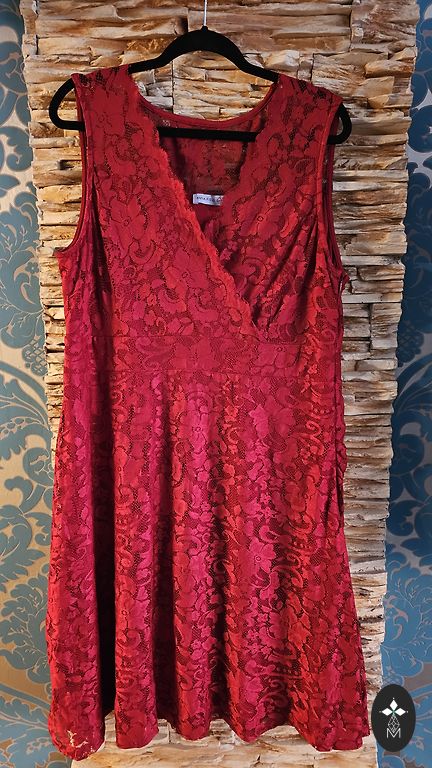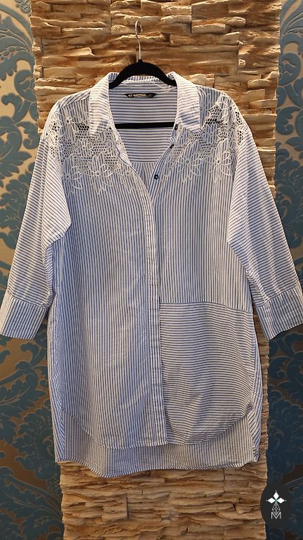 A dress made of firm, fairly warm material. Above the knee, long sleeves. Straight with a beautiful, relatively deep V-neckline. Suitable for sizes 44 and 46 (EU). Best suited for winter, autumn. Can also be worn as a tunic.