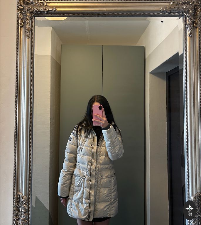 Striukė yra geros būklės, tačiau yra keletas dėmių. Jas galima išvalyti cheminėje valykloje arba namuose rankomis. Striukė yra šilta ir patogi. Tinka tiek žiemai, tiek rudeniui. Dėvėta apie 10 kartų. Yra dvi išorinės kišenės. Gobtuvas nuimamas.